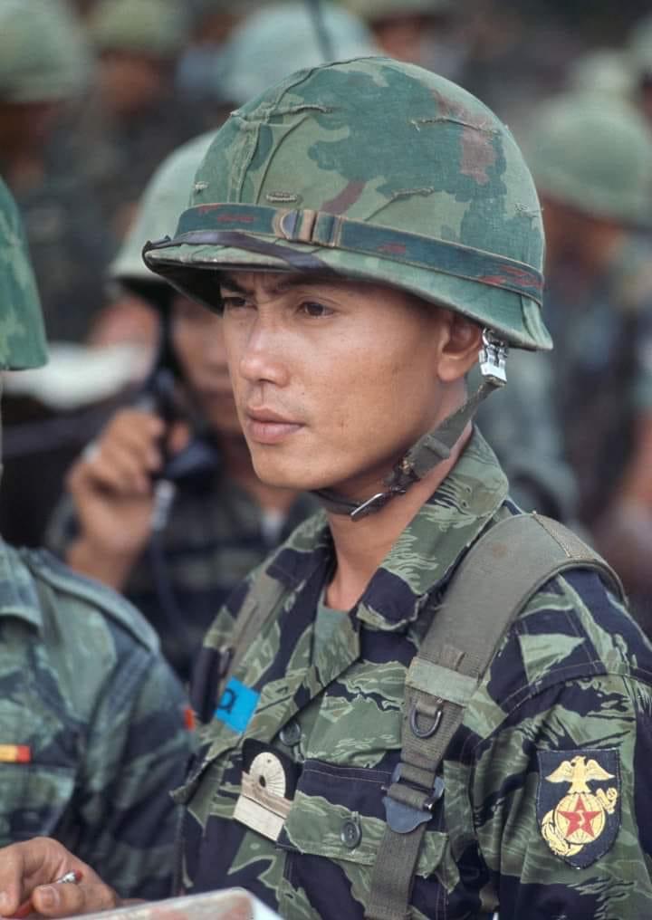 The first tiger stripe design was a locally produced copy of the French lizard pattern made for the Vietnamese Marine Corps (Thủy Quân Lục Chiến), first produced in 1957. This pattern featured bold black stripes over lighter brown bands, with pale green tracer elements on an olive-green background. Production of this design ended in 1967, although units continued to wear the pattern until 1970.