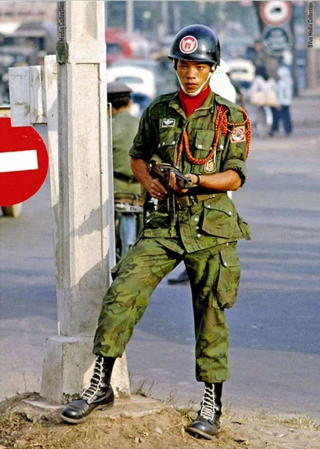 Cũng được đưa vào sử dụng trong quân đội ARVN khoảng năm 1965, một biến thể của mẫu ERDL m1948 của Mỹ được thấy ở đây chỉ được in trên vải cotton sateen dày và có lẽ có nguồn gốc từ Hoa Kỳ . Được chính phủ Mỹ thử nghiệm vào đầu những năm 1960, thiết kế này chưa bao giờ được chấp nhận và lượng vải dư thừa sau đó đã được tặng cho chính phủ Nam Việt Nam. Sự pha trộn màu sắc, các hình dạng hữu cơ màu nâu trung bình và xanh ô liu với “nhánh” màu đen trên nền xanh vàng, có xu hướng hòa lẫn vào nhau khi nhìn từ xa, khiến mẫu này được giới sưu tầm đặt biệt danh là “ERDL vô hình”. Phần lớn những bộ đồng phục này được sử dụng bởi Biệt quân Việt Nam .